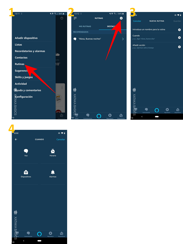 També es fa des de la tablet o mòbil, a través de l’App d’Alexa però aquesta vegada en comptes d’utilitzar el menú “recordatoris i alarmes” n’utilitzarem un que hi ha una mica més a sota anomenat “rutines”:
