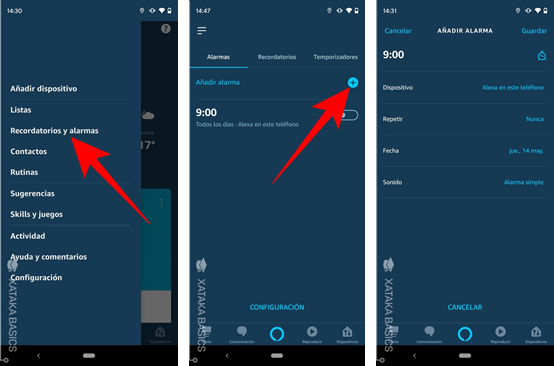 Utilitzarem el menú “Recordatoris i alarmes” que, en principi, aquest és el menú que Amazon ha creat per aquest fi.