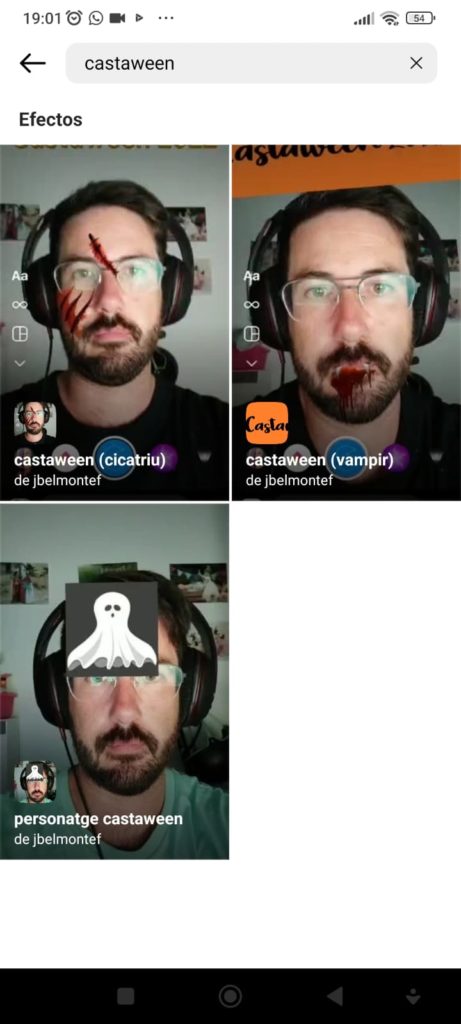 Per trobar-los només caldrà que entreu al vostre compte d’Instagram, seleccioneu el símbol +, crear una Història i us desplaceu a la dreta de tot dels filtres. Allà us apareixerà una lupa i haureu d’escriure CASTAWEEN i ja els tindreu disponibles per passar una estona divertida.