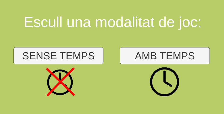 Trobarem dues modalitats de joc: “sense temps” si volem anar al nostre ritme o “amb temps” si volem afegir una mica de pressió o competitivitat a la partida.