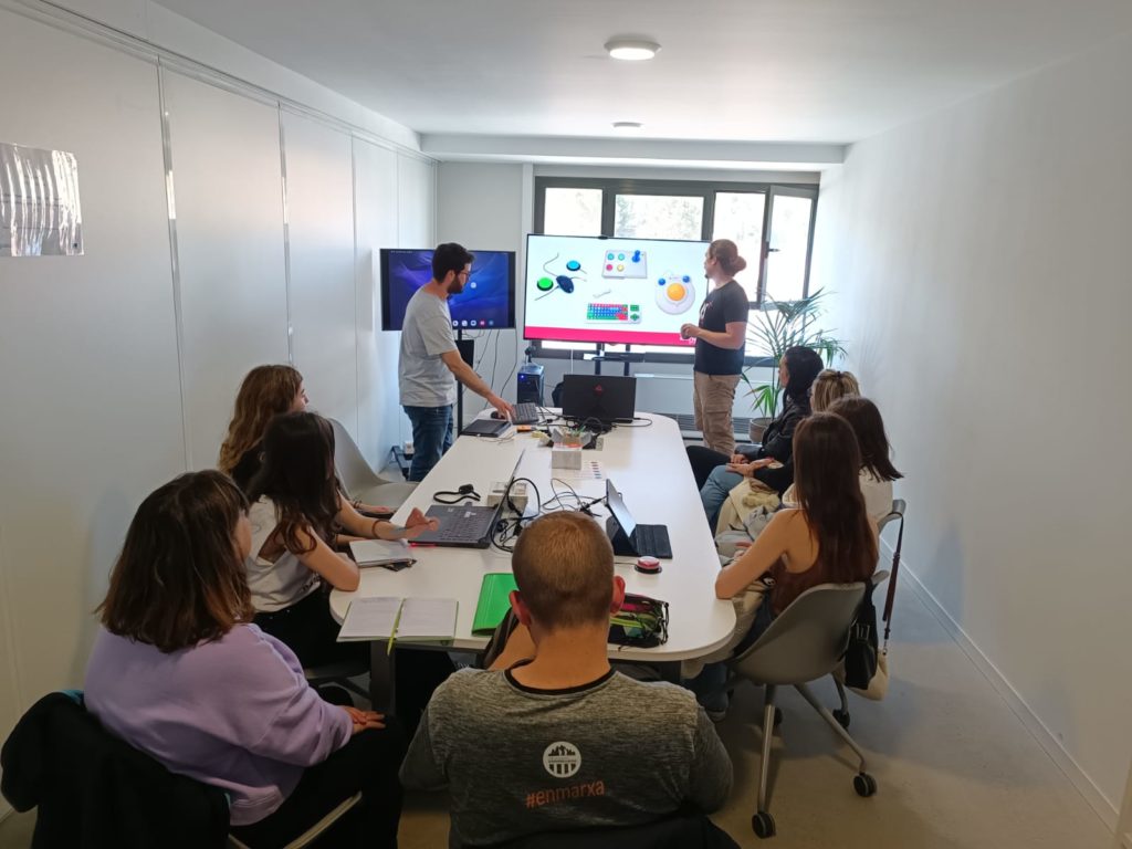 Durant les dues hores que van estar amb nosaltres van poder veure i provar diferents productes de suport per a l’autonomia a càrrec del nostre company del centre Josep Orgué (Arnau) i també van poder veure i tastejar varis productes tecnològics orientats al sector social, dels que disposem a la Fundació, a càrrec dels companys del programa de Noves Tecnologies (Aran i Jordi).