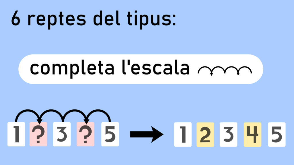 En els 6 primers reptes haurem de completar l’escala de números, és a dir col·locar els números que falten en una cadena: