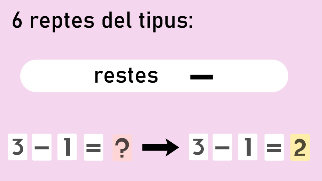 En els 6 posteriors haurem de col·locar números per completar restes senzilles: