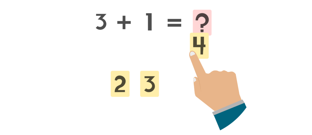 Els números o signes que s’han d’arrossegar són de color groc i es troben a la part de sota i s’han de portar cap als interrogants: