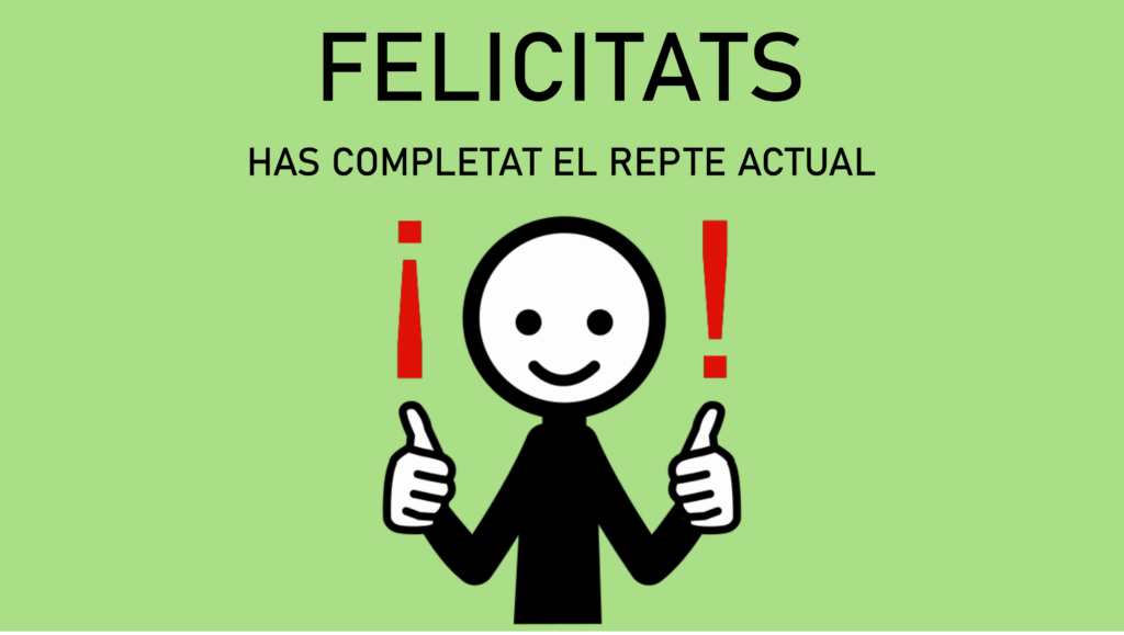 Després d’aconseguir cada repte us apareixerà un cartell felicitant-vos i a continuació us presentarà el següent repte.