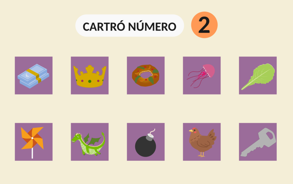 Un cop fet això ja podreu repartir una cartró a cada jugador així com 10 fitxetes o paperets per anar marcant les imatges que vagin sortint en el seu cartró.