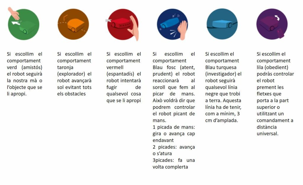 Aquesta setmana us volem mostrar com es pot treballar amb el comportament blau turquesa (investigador) d’aquest robot.