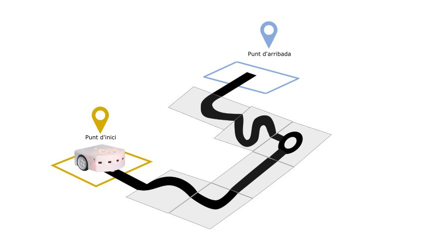 Per fer-ho hem preparat una activitat en la que haviem de construir una carretera per tal que el robot pogués arribar des d’un punt A (punt de sortida) fins a un punt B (punt d’arribada).