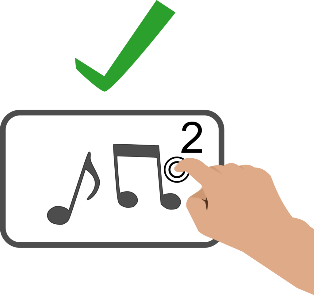 A cada pantalla trobarem una imatge que fa referència a una cançó i més avall dos variants de la cançó, una correcte i una incorrecte.
