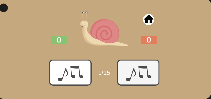 A banda dels botons, si fem un toc simple a la imatge central que trobarem a cada pantalla (en el cas de l’exemple el cargol), escoltarem un fragment curt de la cançó amb un tall. Per saber de quina cançó es tracta, sense la frase correcte ni incorrecte.