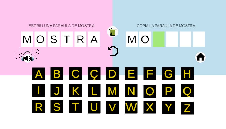 en aquesta activitat el monitor/pare escriurà una paraula i l’altra persona l’haurà d’intentar copiar.