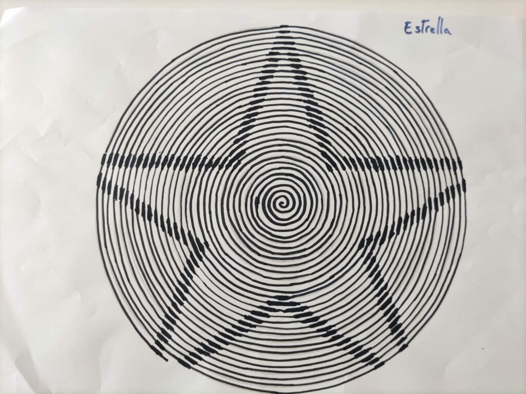La gràcia però és que tant si fem espirals, ratlles o punts tenim la opció de fer-ho “per colorejar“. Això vol dir que no veurem amb claredat la imatge, figura o missatge fins que no haguem colorejat les línies, o punts amb un retolador o llàpis de color.