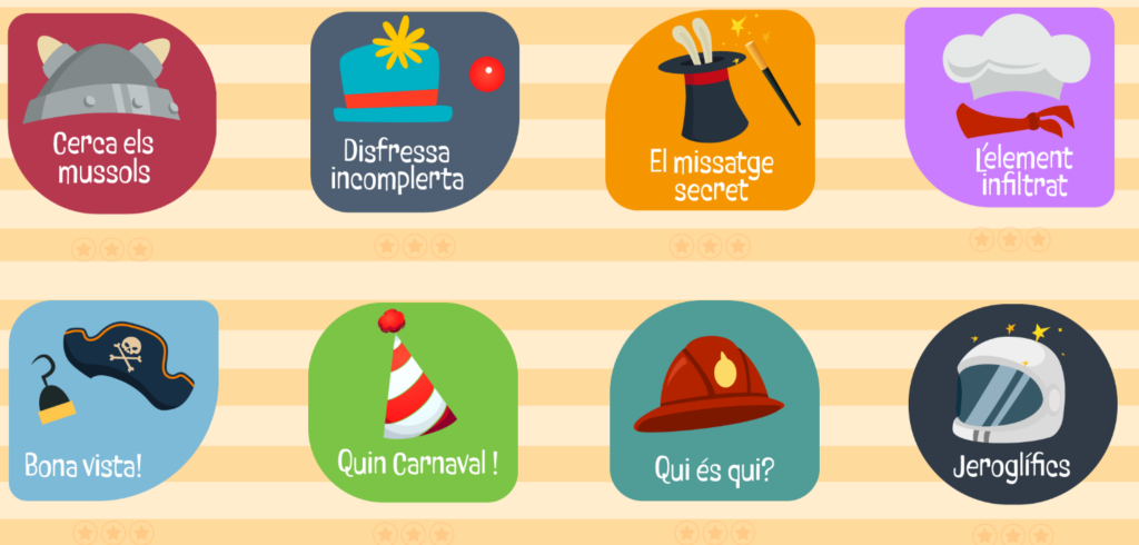 El cinquè és “disfressat” una proposta de la plataforma edu365 en la que trobarem 8 mini jocs: