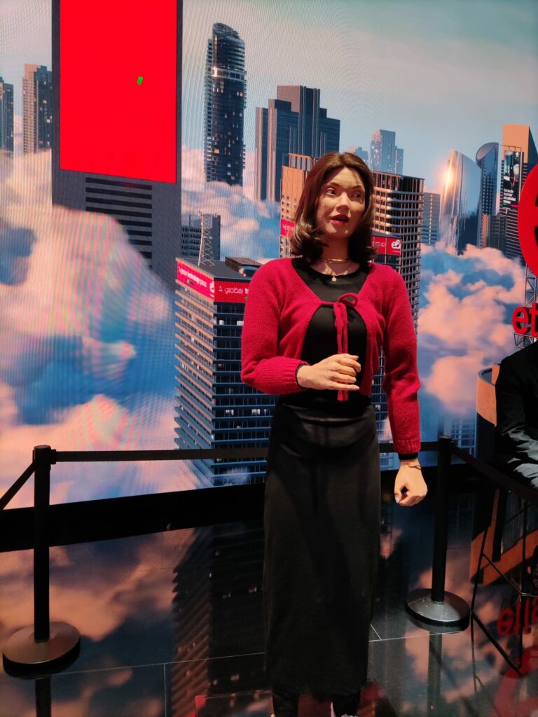 En aquesta altra el robot humanoide AMIRA, un robot ultrarealista de l’empresa Engineered Arts. Un robot amb aspecte de dona, perruca i expressions facials molt aconseguides.