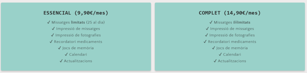 Actualment hi ha dues opcions de quota: servei essencial i servei complet: