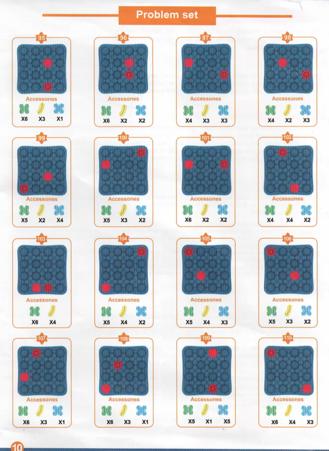 Disposa d’un llibret amb moltíssims reptes, de més senzills a més complicats, per tal d’anar superant-los de forma progressiva i/o adaptant-los a cada persona. En aquest llibret s’indica quines peces es necessiten per completar el recorregut així com la posició del punt de sortida i del punt d’arribada: