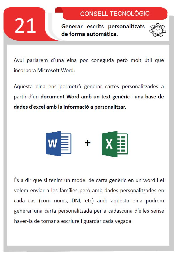 Ja tenim el consell tecnològic núm.21 que parla sobre com generar escrits personalitzats