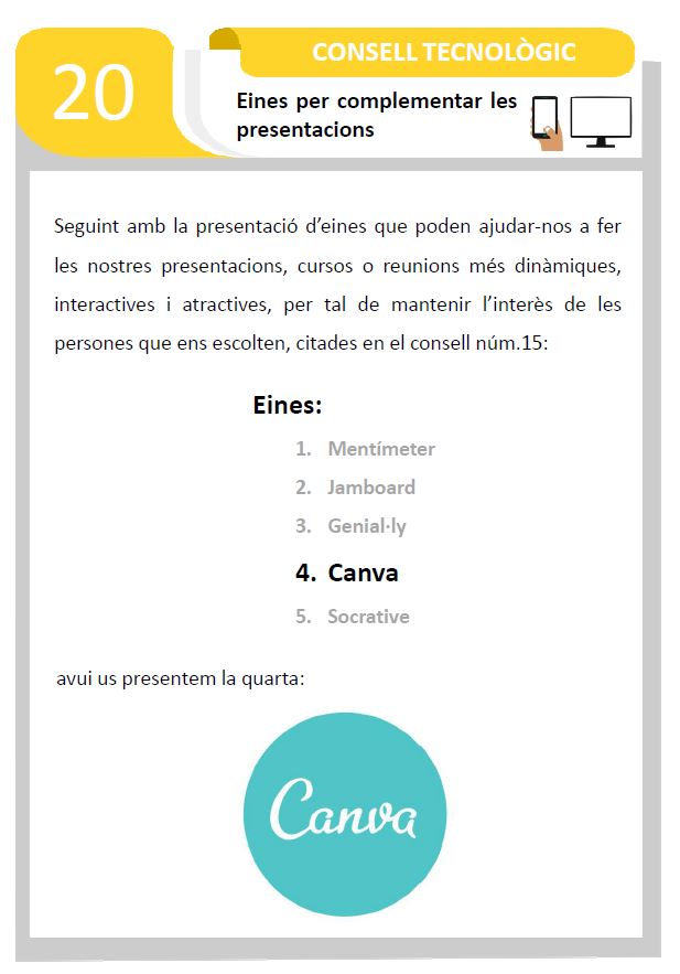 incorporem el consell tecnològic núm. 20 que parlara sobre la plataforma de disseny online CANVA