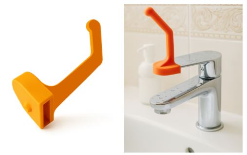 Aquest estri s’encaixa a la palanca de les aixetes per facilitar l’obertura de l’aigua amb el colze.