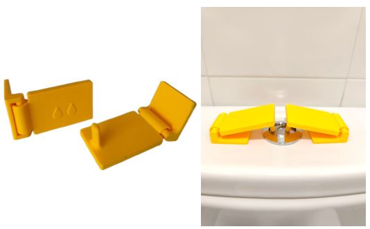 Suport per activar la cisterna del vàter quan no hi ha prou rigidesa als dits o no es té control motor del canell, etc.