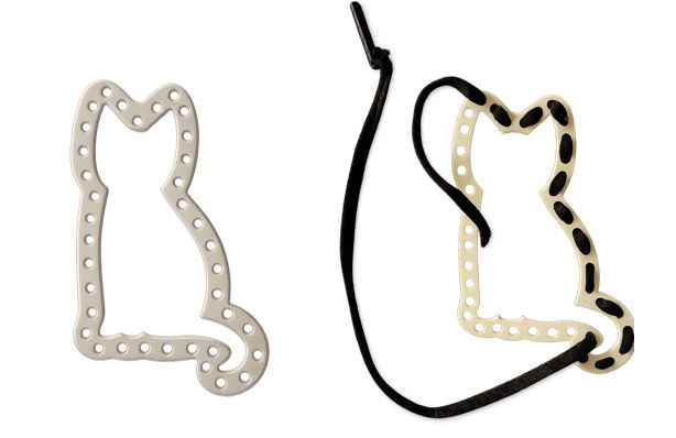Joguina per treballar la motricitat fina enfilant un cordill per dins els forats d’aquesta silueta de gat.