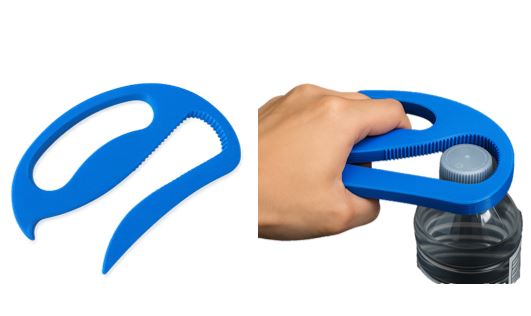 Estri que ajuda a obrir taps d’ampolla de rosca tamany estandàrd ampolla d’aigua.
