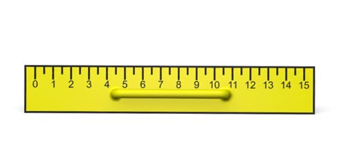 Regle de 15 cm amb base groga i separacions i números negres per oferir alt contrast visual.