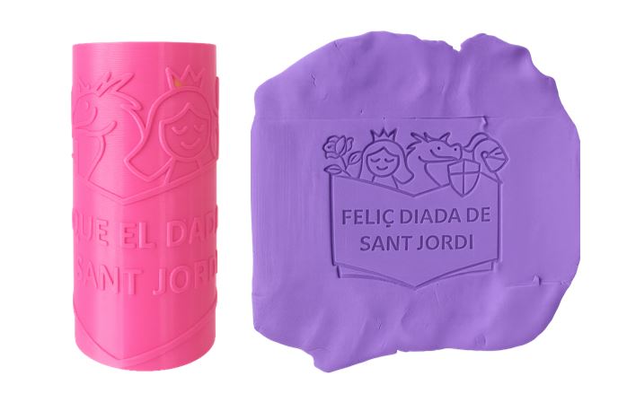 Rodet per estampar una felicitació de la diada de Sant Jordi en planxa de plastilina o fang. Ideal per treballar la motricitat fina el dia de Sant Jordi.