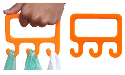 Estri que facilita el transport de bosses de la compra amb la mà.