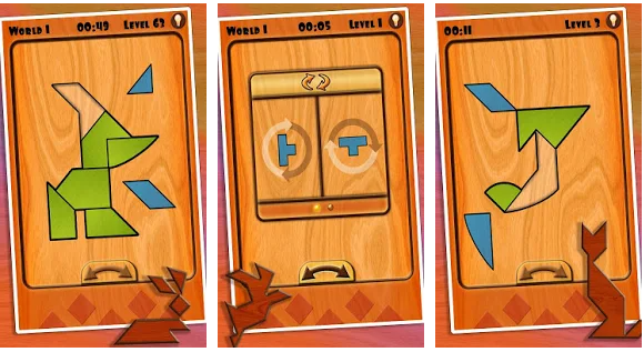 Tangram és una espècie de trencaclosques molt simple, pensat per als més petits de casa. L’aplicació es basa en un joc xinès molt antic que consisteix a formar siluetes de figures amb set peces, però sense solapar-les. Bàsicament, els nens han d’anar situant cadascuna de les peces en la posició adequada fins a completar les figures que apareixen en cada un dels nivells. És un bon exercici per apropar als petits a les figures geomètriques des de molt jove i estimular el pensament lògic i l’orientació espacial. No obstant això, també és una aplicació molt útil per fomentar el desenvolupament de les habilitats motores fines i la coordinació oculomanual