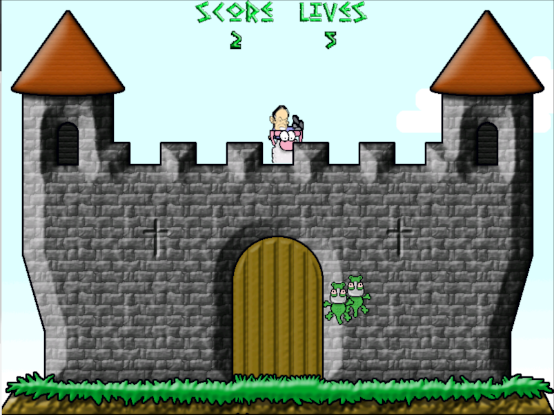 Per tal d’aconseguir-ho en Flossy els hi tirarà objectes des de dalt de la muralla i si encerta a un cocodril, aquest caurà de la paret.