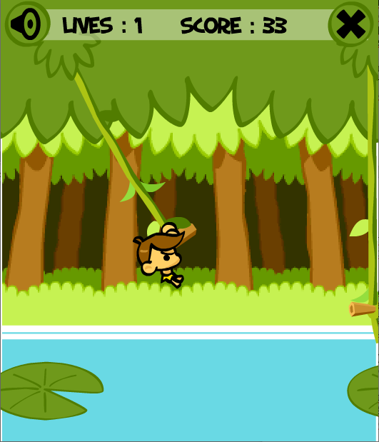 Som un nen que viu a la jungla i per aconseguir recollir plàtans ha de saltar de liana en liana com el Tarzan i vigilar de no caure a l’aigua.