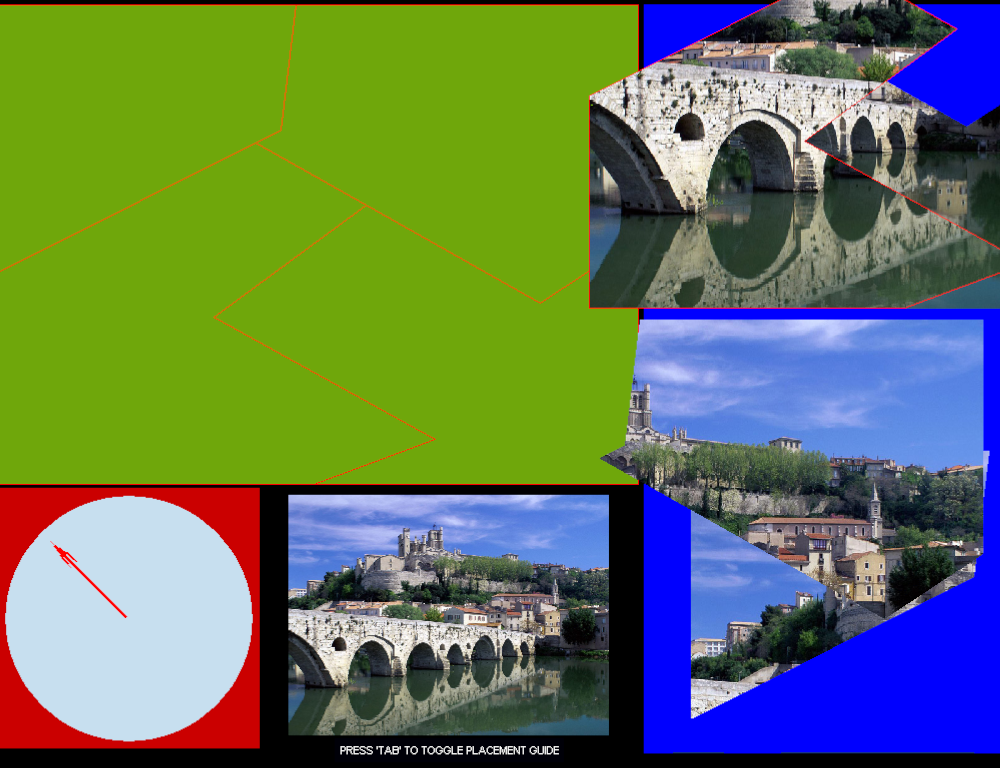 Si volem desplaçar la peça del puzle seleccionada, haurem de mantenir la barra premuda, la direcció a la qual es desplaçarà la peça ve determinada per la fletxa que va donant voltes a l’esfera/rellotge que es troba a la cantonada inferior esquerra.
