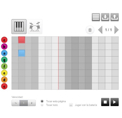 Ens permet escollir i col·locar les notes allà on necessitem i després podem escollir la velocitat amb la qual reproduir els nostres ritmes o cançons. També ens dona l’opció de carregar algunes melodies fetes o guardar les nostres per tal de carregar-les posteriorment.