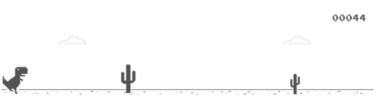 Com podreu veure a la següent imatge, l’objectiu del joc és esquivar el màxim d’obstacles -cactus, ocells, etc.- possibles per tal de recorre la màxima distància possible. Per fer-ho, tal com hem dit prèviament, haurem de prémer la barra espaiadora per tal que el T-Rex salti en el moment adequat.