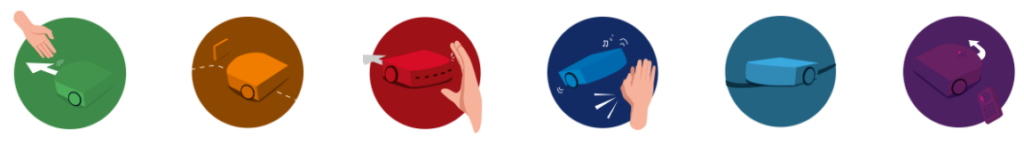 El Thymio és un petit robot dotat de dues rodes i múltiples sensors que li otorguen moviment i reacció a estímuls de l’entorn.