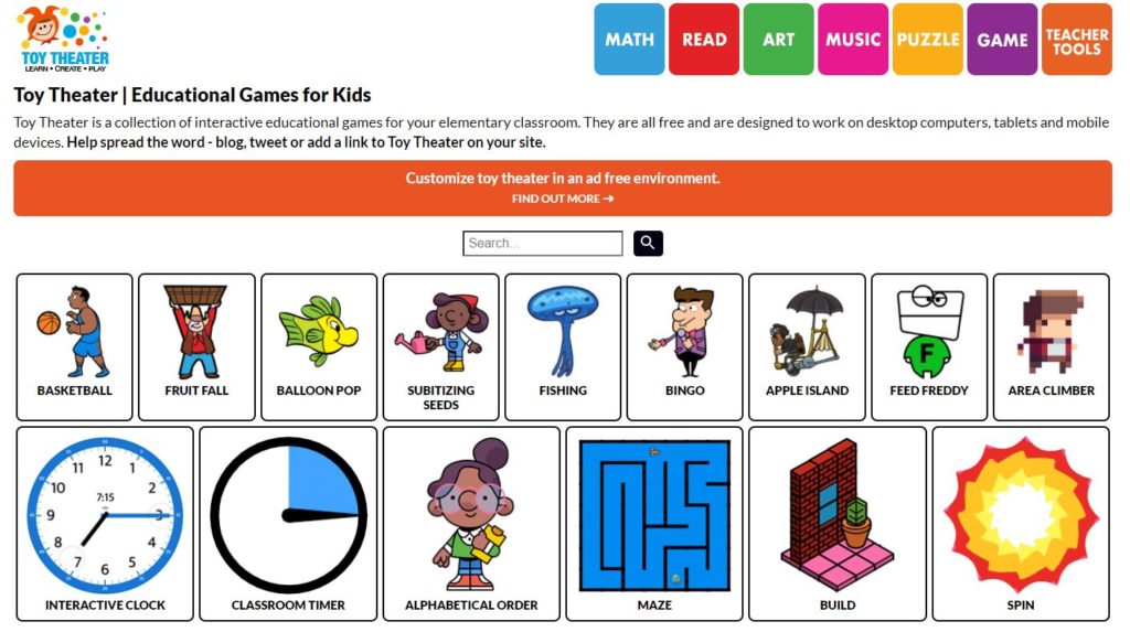 Toy teather és una col·lecció de jocs i recursos interactius educatius i gratuïts pensats com una eina per professors. Tots els recursos es poden utilitzar en línia, des d’un ordinador, tauleta o mòbil. Enllaç a la pàgina